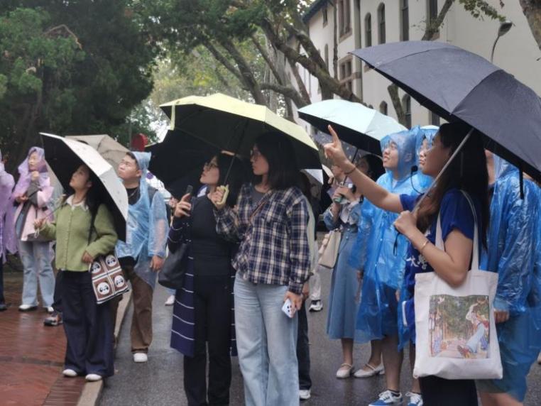 同学们分为两组,在志愿者的引导下,依次参观了海洋生物博物馆、科学馆、化学馆、水产馆、一多楼等校园建筑与文化景观。讲解员娓娓道来,带领大家探寻蓝色奥秘,解读每一栋楼宇背后的历史故事与人文精神,深切感受海大百年积淀的学术底蕴与文化温度。
