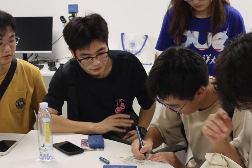 校园知识竞答环节将现场气氛推向高潮。同学们踊跃抢答、积极交流,展现出对海大历史的浓厚兴趣。随后明信片盖章与“时空信箱”环节也备受欢迎——大家挑选心仪的明信片,认真盖章留念,并写下感悟与期许,将这段校园记忆珍藏于心。