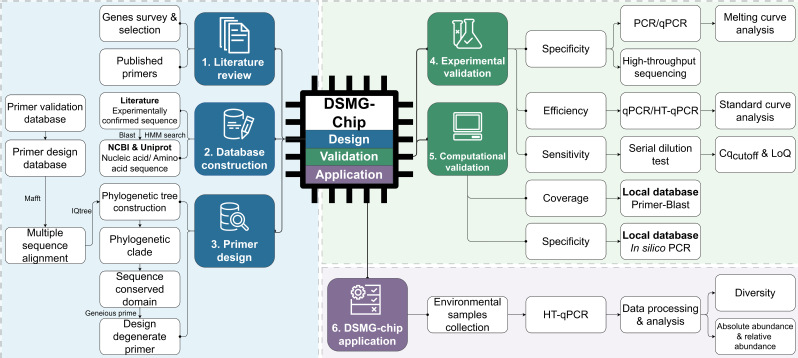 此外,张晓华教授团队近期还在环境领域知名期刊Environmental Science & Technology(《环境科学与技术》)上发表了题为“DSMG-Chip: A High-Throughput Degenerate qPCR Chip for Profiling Microbial DMSP and Related Organic Sulfur Metabolic Genes in Diverse Environments”(DSMG-Chip:高通量简并qPCR芯片精准解析海洋微生物有机硫代谢基因)的研究论文。该研究开发了微生物DMSP/DMS循环高通量简并qPCR芯片DSMG-Chip,实现了27个有机硫代谢基因的同步绝对定量(图2)。研究人员将42对简并引物集成于高通量qPCR芯片,结合智能数据库构建和系统发育分析,建立了从基因检测到环境应用的完整技术体系。基于特异性验证、灵敏度测试和准确性评估,证实了芯片在复杂环境样本中的可靠性,并通过多维度生物信息学分析解析了全球海洋有机硫代谢基因的分布特征和生态意义。